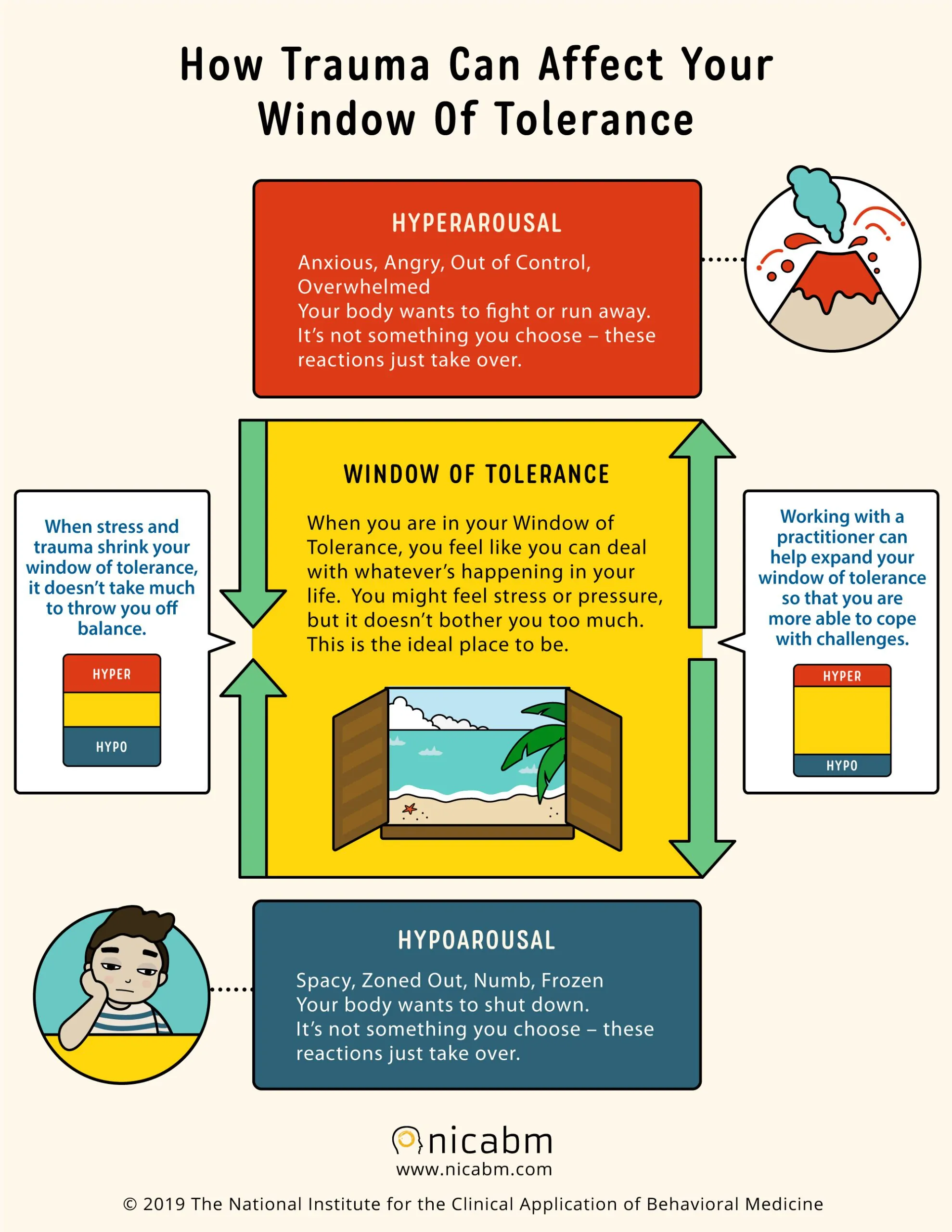Our Window of Tolerance is a state of mind where we are successfully regulating our emotions. To much regulation, and we feel detached or we may even disassociate. Too little regulation and we lose our temper or we run away. It’s a place where we are just anxious enough to make decisions and think clearly.